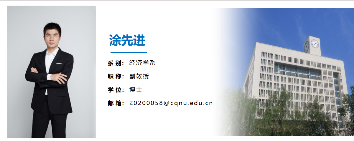 涂先进,男,汉,1982年生,博士学位,副教授,中国消费经济学会会员,主要研究方向为数字经济、居民收入与消费等,主持1项国家社科基金项目、1项重庆社科规划项目、1项重庆市教委人文社科项目,主研其它省部级以上课项,在SSCI、CSSCI等来源期刊发表论文10余篇。邮箱:20200058@x8official.com