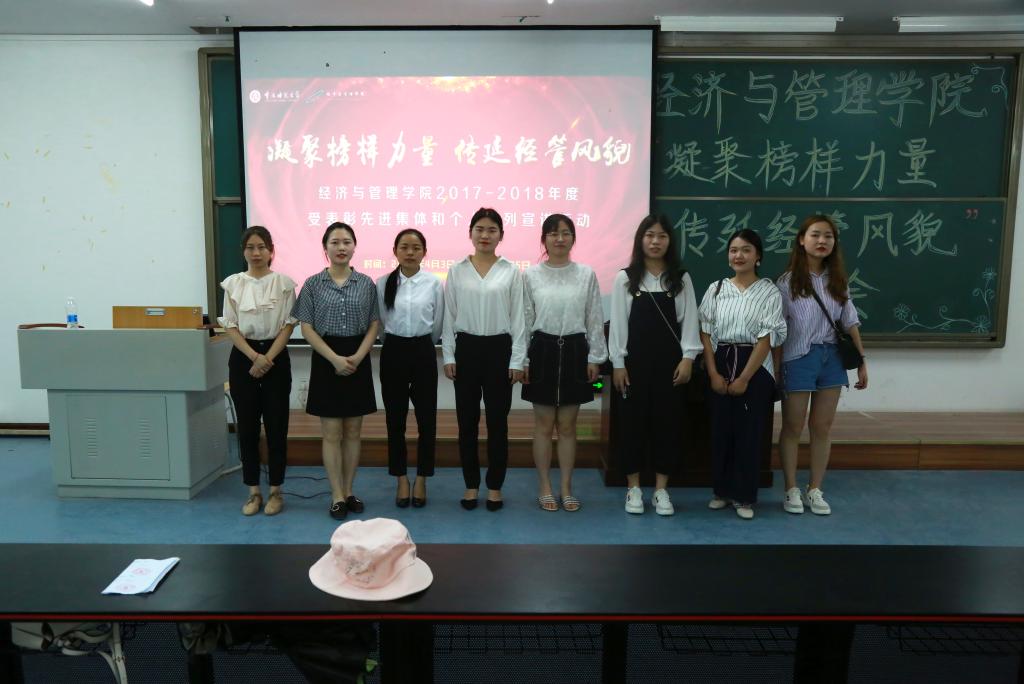 2017-2018学年度文明寝室惠风B4045、雅风B2105,三好学生代表汪廷英、毛雪莲、杨益娟,优秀学生干部代表刘宇婷和肖婷婷。