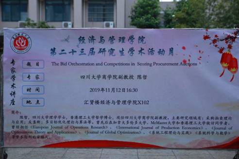 X102举行,出席本次讲座的专家是四川大学商学院副教授陈哲,讲座的题目为”The BidOrchestration and Competitions in Scoring Procurement Auctions”。性吧