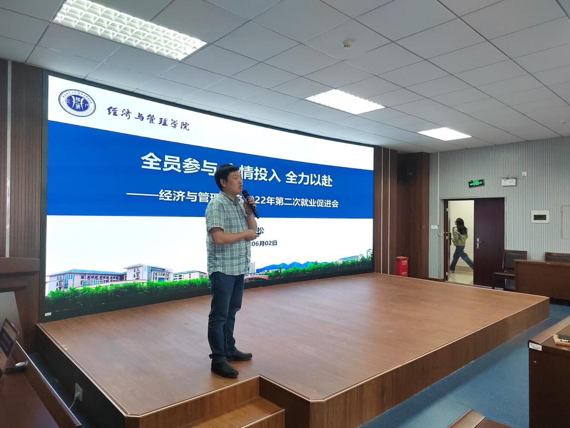 本次活动共分为三个部分。首先,党委副书记李青松传达学校2022年就业推进工作会议精神,进一步强化思想认识,强调贯彻落实就业工作“一把手工程”;其次,李青松副书记对学校整体就业情况进行通报,并简要汇报了学院2022届毕业生目前去向落实情况。随后,他通过对近三年学院就业情况分析、总结,强调全院教师要达成共识,统筹策划、聚焦发力,并从“科学研判就业新形态、用好就业新政策、拓展就业新渠道”等方面布置下一步就业工作安排;最后,李青松副书记肯定目前学院就业推进工作取得的阶段性成果,但也提出许多举措仍需在实践中不断完善,并发出踔厉奋发、笃行不怠、攻坚克难的号召。至此,本次活动圆满结束。