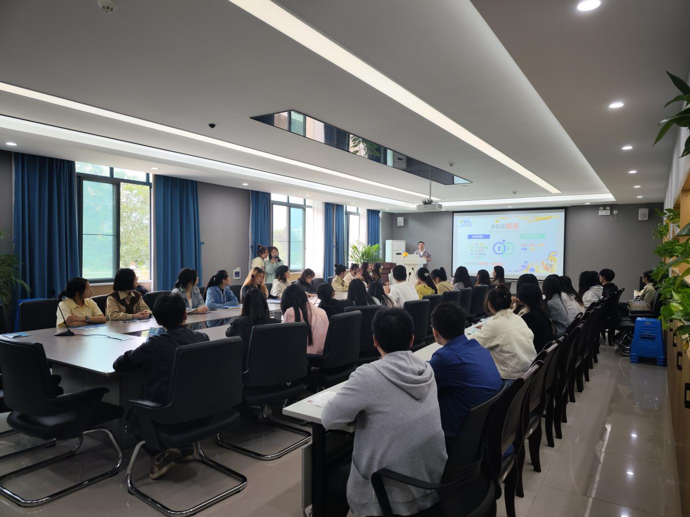 求是楼329会议室顺利举办招聘宣讲会。本次宣讲会由苏宁易购人力资源经理郑川担任主讲人,共计超过50名应届毕业生参加。