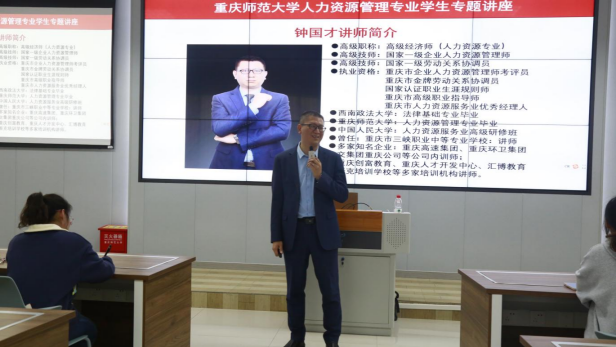 面向人力资源管理专业学生于求是楼131组织开展“人资专业在校如何锻造为优秀的HR”生涯规划讲座。讲座中,国家一级企业人力资源管理师、优秀校友钟国才围绕职场招聘与人力资源管理、当代社会的职业选择与发展、提升自己优势与应对挑战的方法、职场成长与个人发展规划等多个方面展开分享。他指出,在当今社会的各种行业中,各种新兴产业正在崛起,如何把握住机遇,显得尤为重要;并带领学弟学妹们深入探讨了提升自身优势与职业素养对于求职的重要性以及工作目的与实现个人价值的关系。此外,钟国才校友强调了掌控主动权以及克制欲望的重要性,并表达了对大家“前程可奔赴,岁月可回首”的美好祝愿。