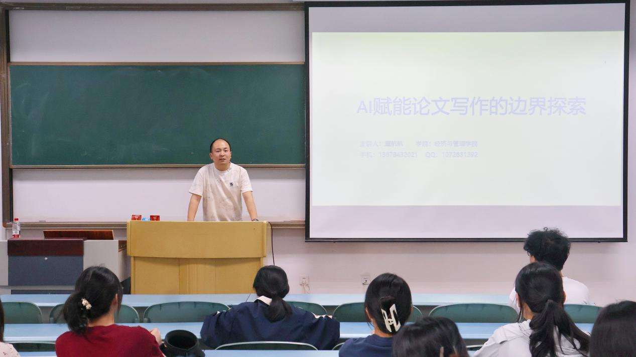 于求是楼329举办经管本科生科研训练营(第四期)——“AI赋能论文写作的边界探索”专题讲座。本次活动特邀经济学系董航航博士主讲。