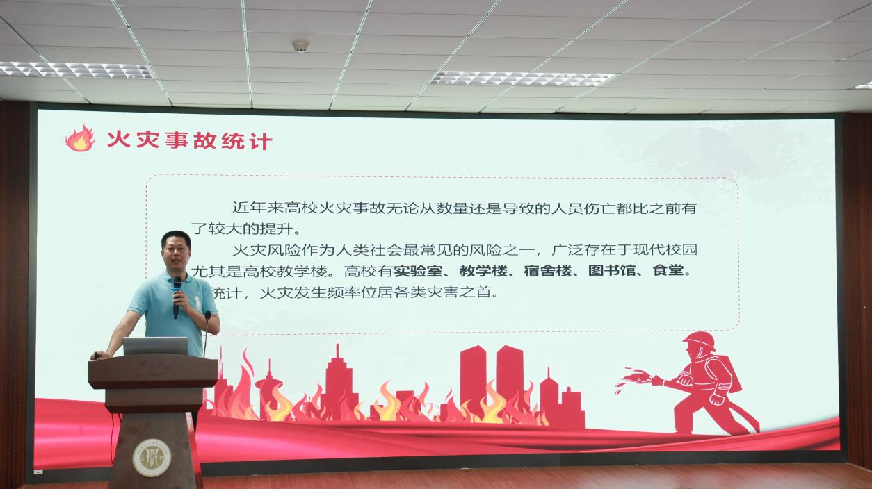 在求是楼517开展2025年消防安全培训。本次培训由学校党委保卫部李鑫部长担任主讲,全院师生代表积极参与,现场学习氛围浓厚。