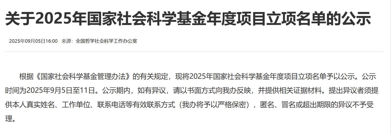 9月5日,全国哲学社会科学工作办公室公示了2025年国家社会科学基金年度项目立项名单。性吧