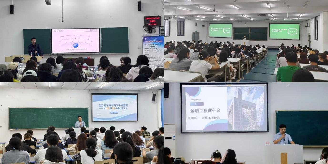 10月16日,学院邀请肖伟、仁勇、李茂怡、项鑫四位不同专业方向的优秀校友返校分享,为新生们带来专业认知教育讲座。四位校友结合自身专业背景与行业实践,从经济学、金融工程、供应链管理及股权投资等领域出发,深入剖析行业发展趋势,分享职业发展经验,为同学们提供了跨学科、多维度的专业认知与生涯规划指导。