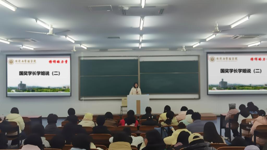 于砺志楼T2507开展国家奖学金获得者经验分享会。本次活动由2023级财务管理专业陈苗、经济学专业洪子珺两位国家奖学金获得者担任分享人,2025级全体学生参与。