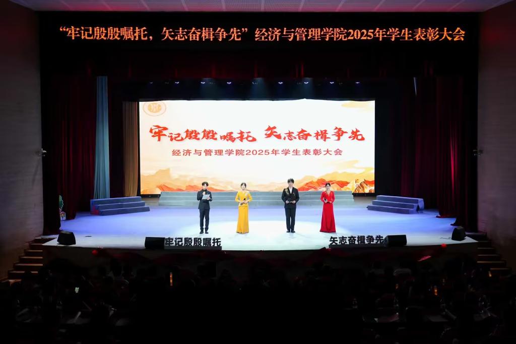 此次表彰大会不仅是对过去一年学院成绩的集中展示与嘉奖,更是一堂生动深刻的思政大课与精神洗礼。它激励全体经管学子以“胡杨精神”扎根成长,以“格桑花品格”绽放青春,牢记时代嘱托,勇担历史使命,在未来的学习与人生道路上持续奋楫争先,为实现中华民族伟大复兴的中国梦贡献青春力量。