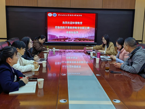 为精准对接重庆市及全国高校教师教学创新大赛要求,切实提升学院教师参赛水平和教学创新能力,2026年2月7日上午,学院特邀请第二届全国高校教师教学创新大赛一等奖获得者、陕西科技大学林营教授,在求是楼420会议室举办专题指导讲座。讲座由学院副院长左金隆主持,相关备赛教师、有志于教学创新及参赛的骨干教师及教科办人员参与。