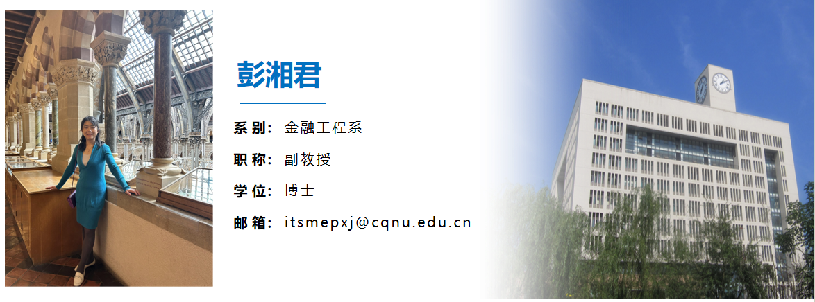 彭湘君,女,汉族,博士,副教授,硕士生导师,国家留学基金委公派英国University of East Anglia(2023-2024)、美国Troy University访问学者(2017-2018),2020年性吧 青年拔尖人才,重庆区域经济学会理事。