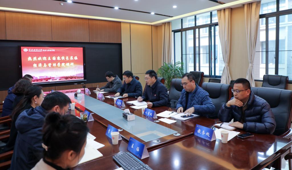 调研并主持召开座谈会,学院全体班子成员、系主任代表参会。