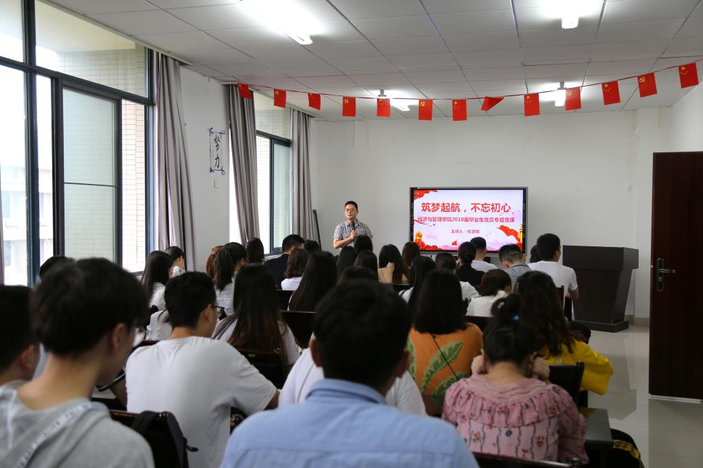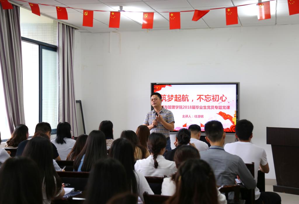 党委副书记任源钢主讲,2018届全体毕业生党员参加。