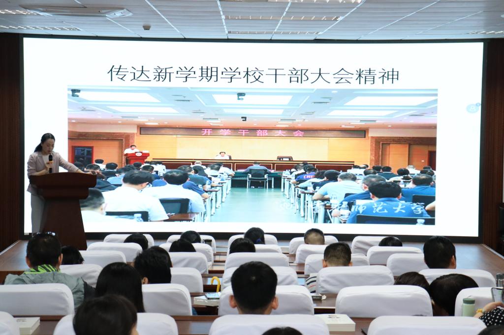 接着,全体教职工观看了习近平总书记“7.26”重要讲话精神的新闻联播报道。随后,钟书记传达了新学期干部大会精神,并结合学院文化墙布置,要求教职工要按照习近平总书记的要求“传承红色基因,扎根中国大地办大学”。