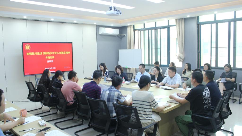 董景荣结合高校、学院发展实际案例,从“严守纪律红线”“强化责任担当”“践行群众路线”等方面展开讲授。他强调,作风建设是党的建设的永恒课题,高校党员及党员干部要始终保持政治清醒,将中央八项规定精神转化为推动学院高质量发展的行动自觉。还特别指出,当前高校作风建设需聚焦学术生态净化、服务师生提质增效、经费使用规范透明等关键领域,要求党员干部以“刀刃向内”的勇气推进自我革命。