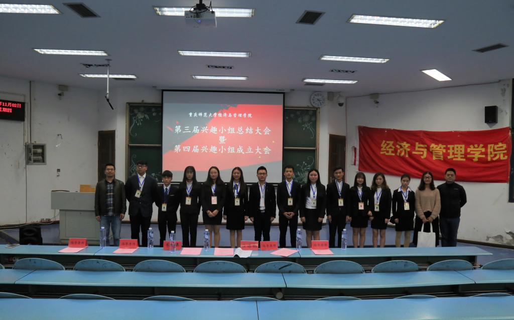 大会伊始,朱旭森书记上台致辞。朱书记鼓励各小组同学们积极参与活动、挖掘自身潜力、发挥各自特长,并代表学院表示对各兴趣小组的殷切期望与大力支持。朱旭森书记希望兴趣小组能注重理论与实践的结合,通过开展授课、培训等活动增加同学们对社会的认知和理解。随后,大会展示了各个小组近一年取得的各项成果。第三届兴趣小组组长代表勾城肯定了第三届兴趣小组获得的成果,并表示感谢学院为同学们创造的机会,让同学们受益匪浅。紧接着朱旭森书记宣读第三届兴趣小组组长名单并为其颁发聘书,宣读第四届兴趣小组组长名单并为其授牌。第四届兴趣小组组长代表王梦雅上台发言。她说,兴趣小组是同学们培养兴趣、拓展知识、提升专业技能的好平台,她表示将不负学院的期许,带领小组成员共同学习和进步,充分发挥兴趣小组的积极作用。最后,任源钢书记上台致辞。任书记说,兴趣小组的目的在于全方位培养同学们的各项能力,大学生的学习成绩固然重要,但提升自我修养、学会运用专业技能、把自己塑造成二十一世纪新型人才更为重要。任书记强调,各个组长要有敬业精神和奉献精神,带领团队成员互帮互助、共同进步。大会结束,全体人员合影留念。