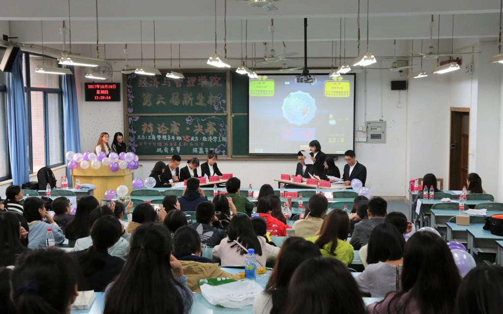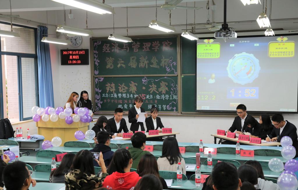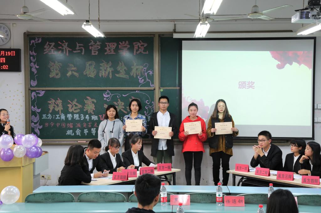 举办第六届“新生杯”辩论赛,经过初赛、复赛的激烈角逐,来自工商管理3、4班与来自经济学1班的两支辩队凭借清晰的思路以及自信的谈吐成功进入决赛。10月19日下午13点,辩论赛决赛于弘德楼15101教室举行。重庆大学城市建设与环境管理工程学院辩论队队长丁桐、性吧