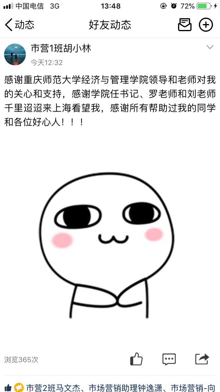 在老师、同学以及社会各界热心人士的关心帮助下,胡小林同学已完成第二次化疗,学校、学院也将持续关注他的情况。面对各方的关心帮助,胡小林向学校、学院、老师和同学们以及社会各界热心人士的关心、帮助和支持表达感谢,自己一定会坚强起来,战胜病魔,早日返校学习。