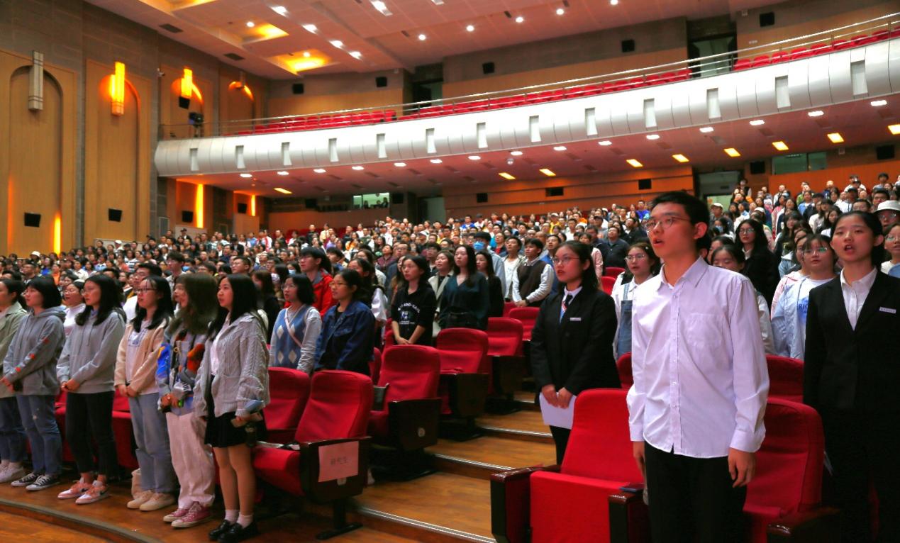 在庄严的国歌声中,2021级新生开学典礼拉开序幕。
