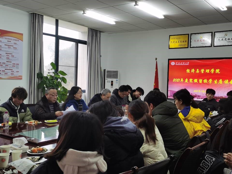 于汇贤楼311会议室成功开展了2021年度寒假留校学生座谈会。学院党委副书记任源钢主持会议,学院党委书记税强,副院长喻科、陈道平,寒假留校学生及辅导员参与此次会议。