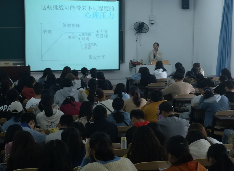 辅导员罗姝老师主讲,分别从如何正确认识大学生心理健康、大学生可能面对的心理挑战和压力、警觉心理亚健康七大信号以及应对方式、我校为学生提供的心理健康服务渠道等四个方面进行讲述。