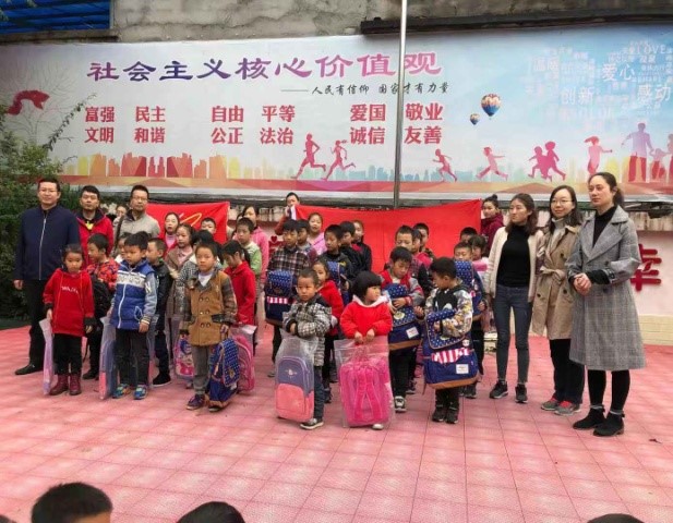 “扶贫先扶智”要从根本上脱贫,教育扮演着非常重要的角色。主题党日期间,经济学支部的老师和同学们还来到东河村小学,与学校的老师和同学们进行了沟通交流,向东河村小学的贫困学生捐赠了书包等慰问品。