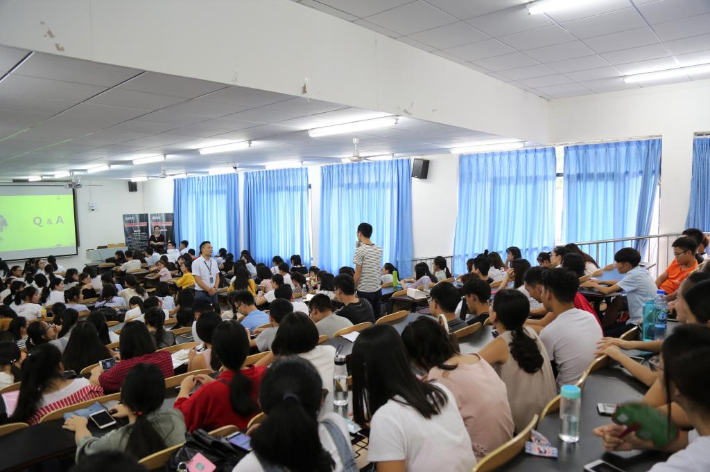宣讲会的尾声,学生们踊跃提问,16级一名同学提出“顺丰班除了每周五必要的理论课培训外,是否还有其他课程要修?”对此王经理表示,企业对顺丰班有推荐的课程可以选修,相信大家都是有一定的学习能力的,也能够很好的完成对这些课程学习。而对于另外一名女生提出的学费问题,王经理解释:企业对顺丰班的培训都是免费的,并且还会对成绩优异的学生发放丰厚的奖学金,激励学生更好的学习。