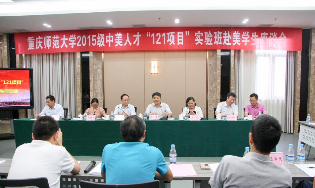 7月1日下午,我校2015级中美人才“121项目”实验班赴美学生座谈会在博雅楼502会议室召开。我校校长周泽扬教授、中国国际教育交流中心主管“121项目”的项目总监王颖以及副总监刘法群出席座谈会。学校国际处、招就处、教务处、学生处等部门负责人及性吧