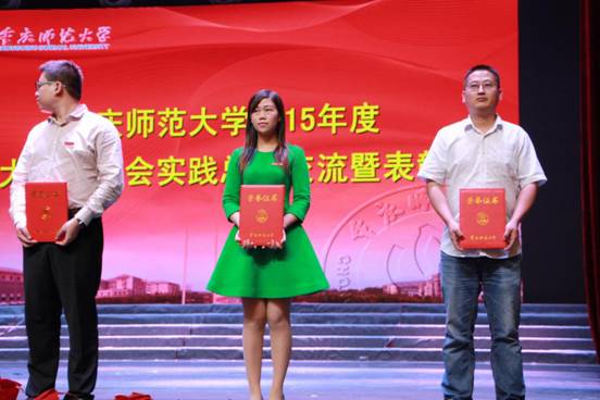 颁奖环节,获得大学生社会实践活动“优秀团队”、“先进工作者”和“先进个人”的获奖者以及学院代表先后上台接受表彰,现场响起了一片经久不息的掌声,为他们的实践喝彩,为他们的实践致意。