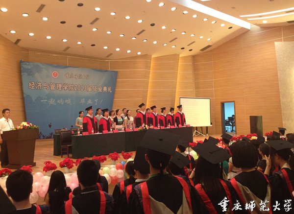 毕业典礼伴着庄严的国歌拉开序幕。首先,性吧 院长田盈向毕业生作临别赠言,鼓励毕业生们在以后的工作岗位上踏实肯干,勤奋努力。随后,性吧 学位评定分委员会代表对全体2013届毕业生进行授位,校学生处王丽萍副处长宣读性吧 本科优秀毕业生名单,副院长陈道平、刘永春分别宣读了研究生优秀毕业生名单和2013级录取的研究生名单。
