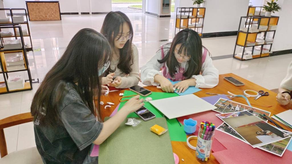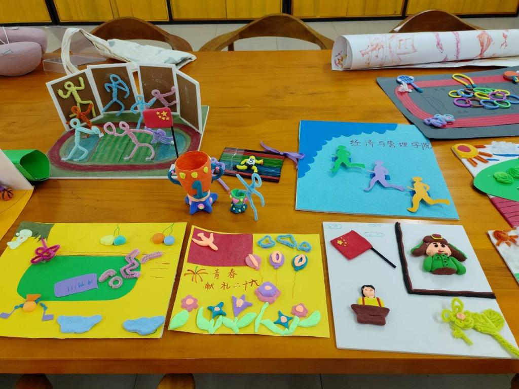 近期所举办或参与的活动精彩瞬间进行简单讲解,其中,有“秉热血,捍卫志愿信念”的经管志愿者们,有“恰同学少年,风华正茂”的经管运动健儿们,也有在专业竞赛场上意气昂扬、笃定从容的经管学子们。同学们选择其中一个场景进行手工制作,大家充分发挥想象和创意,搭配色彩、设计造型,将自身对经管风采的理解与感悟融入作品中,沉浸式享受着亲手创造的乐趣,现场一片欢乐。制作完成后,参与者将作品进行展示,并讲解自己的创作理念,每一位同学的作品都独具创新与想象力,展现出独属经管的风采。