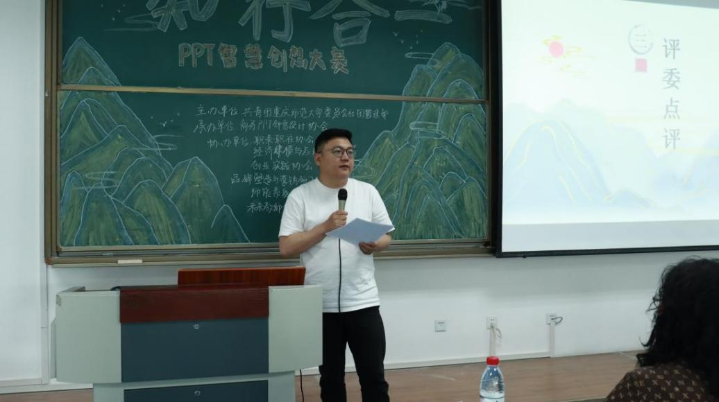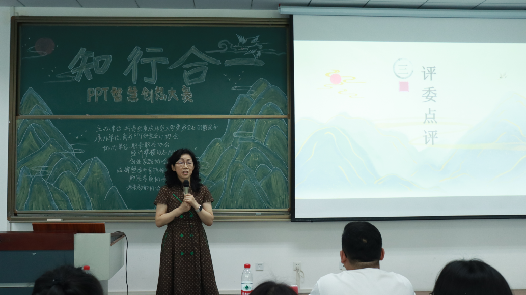 赛后点评环节中,孙小珂老师充分肯定了各参赛选手的现场表现,并对其参赛作品的内容排版、颜色基调、讲解效果等进行了细致点评,建议同学们在PPT制作时多把控细节,有效突出重点,希望同学们在未来的学习和工作中追求更高的“智慧”与“创新”。杨俊玲老师和阳芙蓉老师也具体点评了选手在语言表达、现场互动和仪表仪态等方面的表现,并鼓励其要勇于打破常规,不断探索内容设计与视觉传达的新领域。