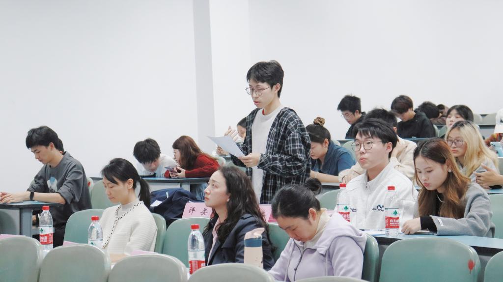 本场比赛以“人生若只如初见是可喜还是可悲”为辩题展开,比赛共有立论陈词、申论、对辩、盘问、自由辩论和结辩六个环节,辩论期间双方辩手娓娓道来,激烈交锋,严肃认真的同时幽默感十足,引得现场同学掌声连连,笑声不断。比赛现场精彩不停,热闹非凡。