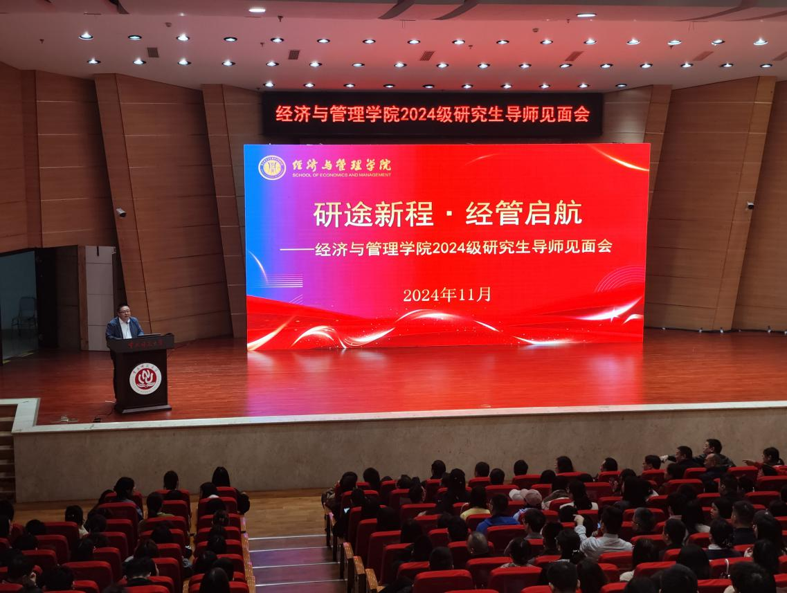2024级研究生导师见面会在校友会堂音乐厅举行。学院党政领导、研究生导师、研究生办公室老师、2024级全体硕士研究生参加见面会,副院长陈宇科担任主持。