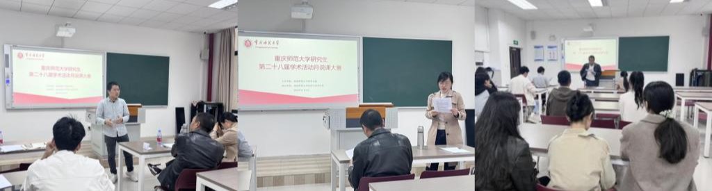于求是楼220教室举办第二十八届学术活动月研究生说课大赛。比赛邀请到经管学院冉亚清教授、彭素副教授、尹亚华副教授担任评委,经管学院8名研究生选手参与竞赛。