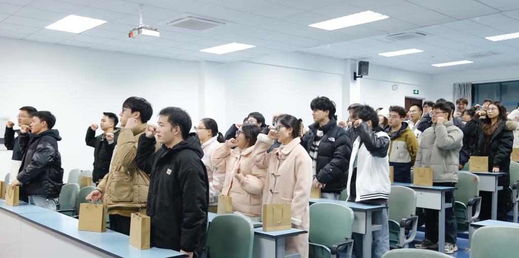 学院还为每位考生精心准备了考研大礼包,低年级的学弟学妹们也通过明信片的方式表达了对考研学子的美好祝福,让考生们充分感受到了学院大家庭的温暖和凝聚力。随后唐艺珊带领同学们一起进行考研宣誓,预祝同学们一切顺利,未来可期。