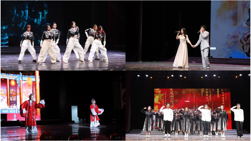 山海相逢,生生不息。开场舞《大家一起喜洋洋》的欢快音符响彻演出厅的每一个角落,活力恣意张扬,正式拉开了晚会序幕。街舞《power&show you can》呈现出酷飒的舞姿,张弛有力、自信昂扬,台下鼎沸恰青春滚烫;歌曲《一笑倾城》乐曲轻扬,传递着真挚的情感,直抵灵魂深处;《追梦少年说》用青春的声音诵读盛世华章,声情并茂,强国之音掷地有声;配音演员们用声音塑造着角色的灵魂,讲述着角色的故事,为观众演绎着一场别样而又贴近生活的剧情;评戏《花为媒》将中华传统文化的魅力展现在舞台上,华夏之经典在传承中开启新篇章。