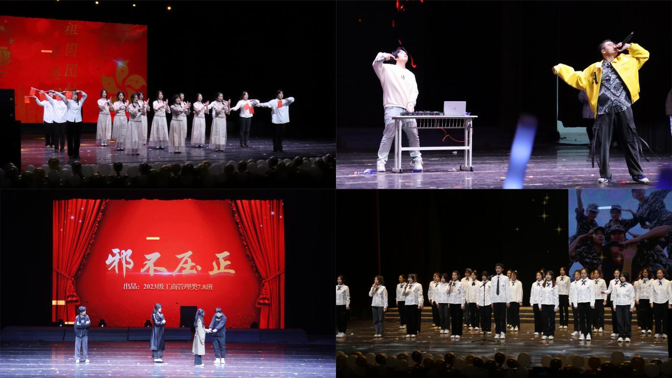 乘风破浪,共谱“新”篇。舞蹈《you&me》的舞者们青春的身影在舞台上跃动,舞动的步伐奏响时代乐章;歌舞剧《百年风华,盛世如愿》带来一场听觉和视觉的双重体验,演绎出经管学子坚持奋斗的昂扬姿态;《Come Back!》用动感的节拍点燃热情,把DJ的魅力展现得淋漓尽致,掌声不停,尖叫不断,将全场氛围带上高潮;小品《邪不压正》用诙谐的语句、轻松的语调,揭露诈骗手段,引人深思;在全场齐声高唱《夜空中最亮的星》的歌声中,性吧