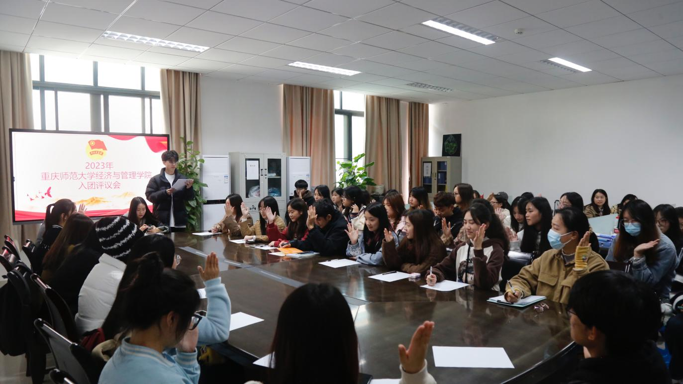 组织部部长杨淋主持,共分为六项议程。在宣读入团候选人名单后,各入团候选人围绕个人基本情况、对共青团认识、入团动机、团校成绩和在校表现等方面进行汇报,并经入团推荐人发表的意见、团代表的举手表决等环节,最终确认22名积极入团分子成功入团。议程最后,辅导员唐艺姗老师发表讲话,她表示,新晋团员们应时刻按照共青团员的行为标准严格要求自己,谨记团的章程,履行团员义务,努力学习党的重要理论,宣传、执行党的路线、方针和政策,同时希望其认真完成学业和工作,勇于开展批评与自我批评,努力在各方面发挥模范带头作用。
