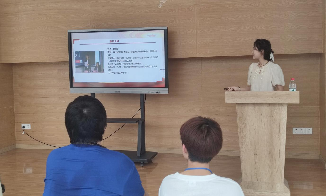 活动中,曹文暄、陈晓露两位嘉宾就“挑战杯”红色赛道的背景与目的以及参赛细节向大家讲解,并结合自身参赛经验提出参赛建议。主持人向参加人员展示介绍优秀项目参赛经历的视频,帮助同学们熟悉相关参赛环节。同时活动设置了有关于创新创业的有奖问答环节,同学们积极参与抢答,在提升同学们知识水平的同时,也增加了活动的趣味性和互动性。