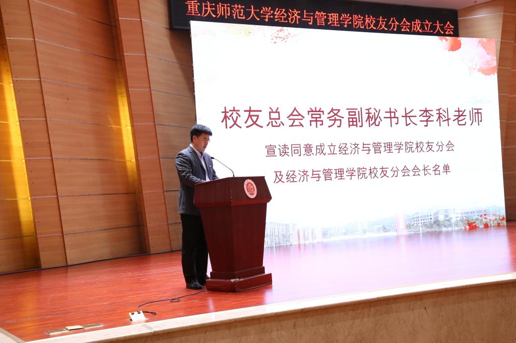 校友总会常务副秘书长李科老师宣读同意成立性吧