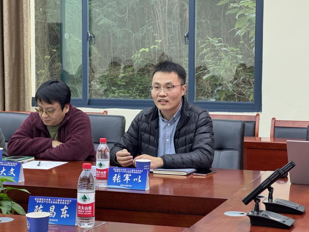 在论坛开幕时,地理与旅游学院教授、硕士生导师张军以讲话指出,两个学院在学科背景和研究领域上各具特色,但又有着紧密的内在联系和互补性,通过加强两个学院之间的合作与交流,不仅可以促进学科交叉融合,还可以共同探索新质生产力与区域绿色发展的新路径,为推动区域经济社会发展提供更加全面和深入的智力支持。