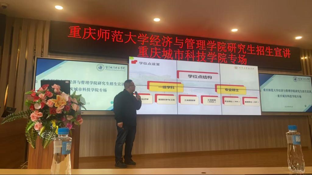 组织招生宣讲团队,前往重庆文理学院、重庆城市科技学院开展研究生招生宣传工作。此次宣讲团由学院副院长陈宇科带队,张保帅教授和周明适老师共同参与。