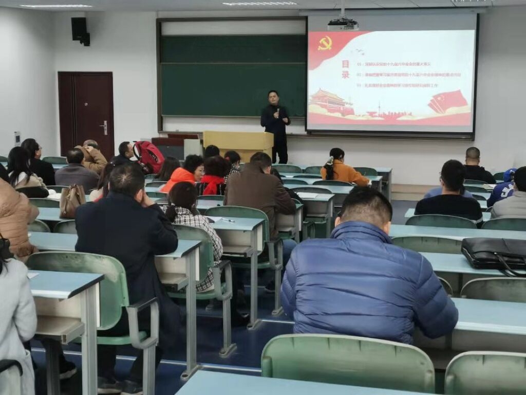 会上,党委副书记任源钢表示,党的十九届六中全会是承前启后、继往开来的里程碑,是在新的历史起点上,我们党为实现第二个百年奋斗目标、实现中华民族伟大复兴的中国梦的宣言书、动员令。全院教职工要把学习党的十九届六中全会精神当作当前工作的一项重大政治任务,把学习会议精神,与党史学习教育结合起来,加强思想政治引领,提高政治站位,把党的宝贵经验传承好、发扬好,牢记为党育人、为国育才的神圣使命,坚持立德树人根本任务,切实把全会精神转化为做好教育工作的强大动力。