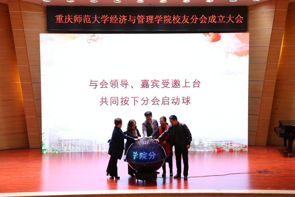 校友分会会长赖吉松、税强,常务副会长赵艳君、郑景丽共同按下分会启动球,性吧