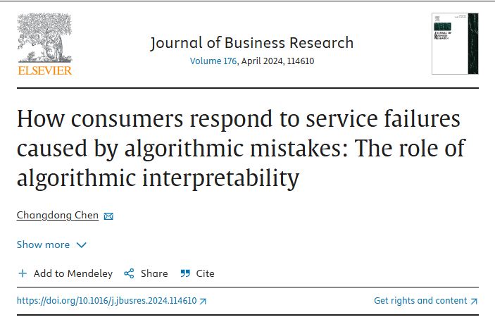 近日,学院市场营销系陈昌东博士撰写的论文How consumers respond to service failures caused by algorithmic mistakes: The role of algorithmic interpretability在Journal of Business Research公开发表。