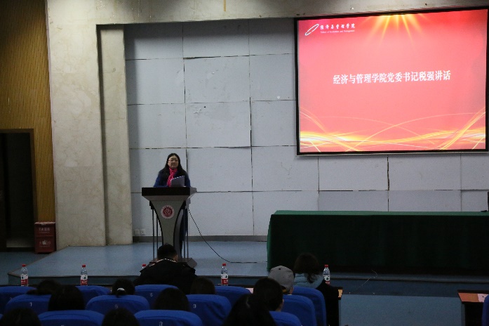 的视频。视频里,习近平总书记在学校图书馆殷切嘱托同学们:大学生要端正择业观念,对于择业定位要准确,立定脚跟,在社会上广阔的天地大显身手,到基层去,到边远的地区去,到社区去,到农村去,到军营去,志存高远的青年一代立志要高,但起步要低,一定要脚踏实地的在基层摸爬滚打。之后,税强书记发表讲话,她分别从毕业生规模扩大、就业岗位供给不确定性加强、就业形势差异大、自主创业缺乏、慢就业趋势加剧等五个方面阐述了造成严峻就业形势的原因。接着,税强书记结合当前国家新发展阶段目标,勉励同学们要牢记习近平总书记的嘱托,立鸿鹄志,做奋斗者,投入到强国伟业的建设中去,并提醒毕业生们要准确定位,积极就业,预祝毕业生们找到合适的就业岗位。