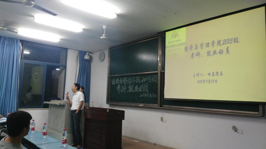 针对2015级五个专业的学生分别组织召开五场考研、就业动员会。2017年9月26日晚7点,15级金融工程专业动员会于学院楼101教室如期举行,性吧