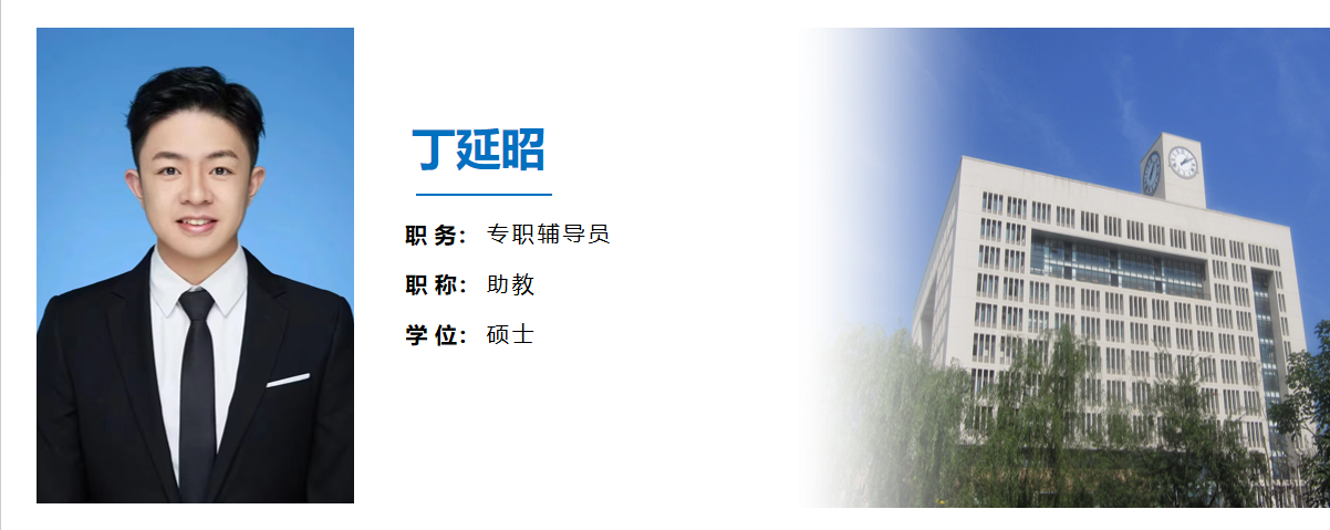 丁延昭,男,汉族,1996年11月出生,中共党员,本科:西南政法大学行政法学院 法学学士,硕士:西南政法大学人权研究院 法学硕士,现任性吧 专职辅导员。