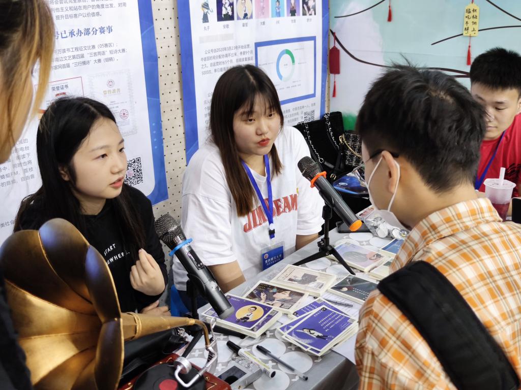 坚果合作社平台展示了“ERP沙盘模拟”、“商务PPT”、“梧桐学社”以及“漫漫留声机”四个项目。到场同学通过体验ERP沙盘模拟,在企业经营管理的实战演练中熟悉企业的运作模式;商务PPT项目小组成员展示的精美PPT,吸引现场多人驻足观看;梧桐学社及漫漫留声机通过让参观者们亲手书写愿望卡片、朗读舒缓文章的方式调节情绪、释放压力,更有来自越南的文学爱好者在性吧