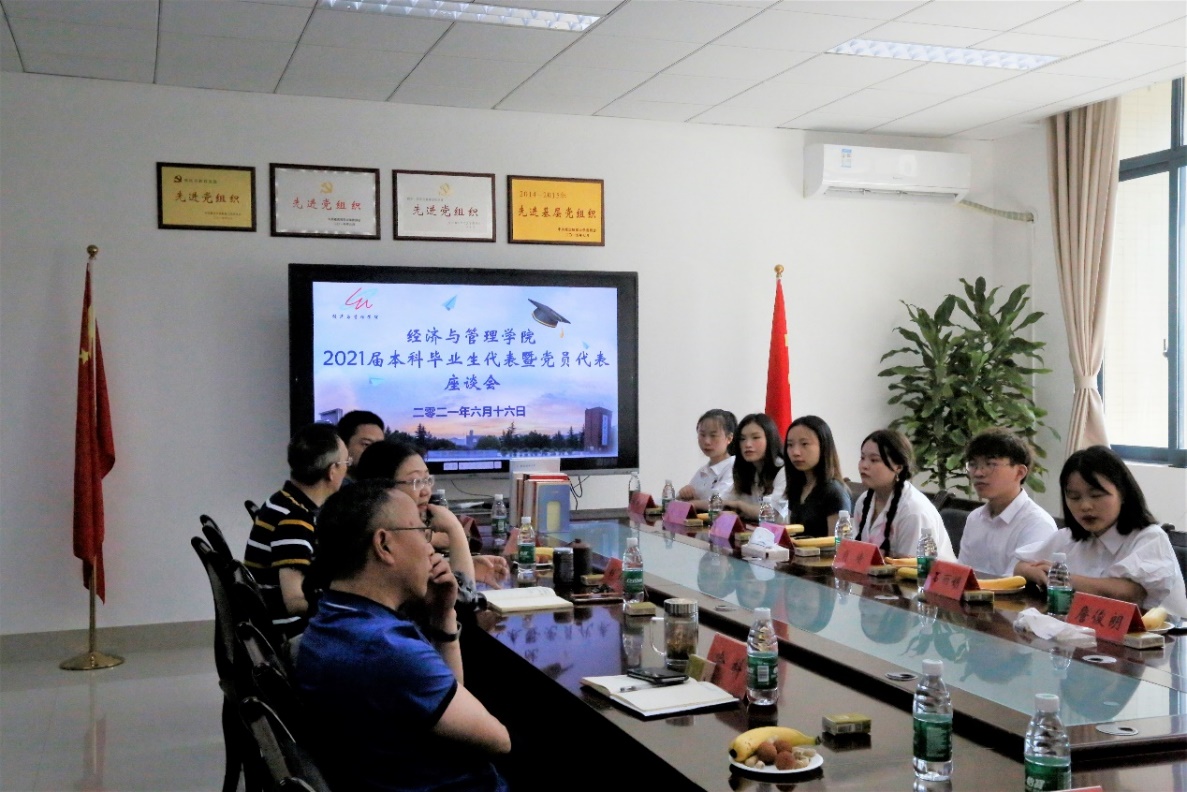 于求是楼420会议室开展了2021届本科毕业生代表暨党员代表座谈会。学院党委书记税强,副书记任源钢,副院长喻科、陈道平及2021届本科毕业生代表、党员代表参与座谈会。